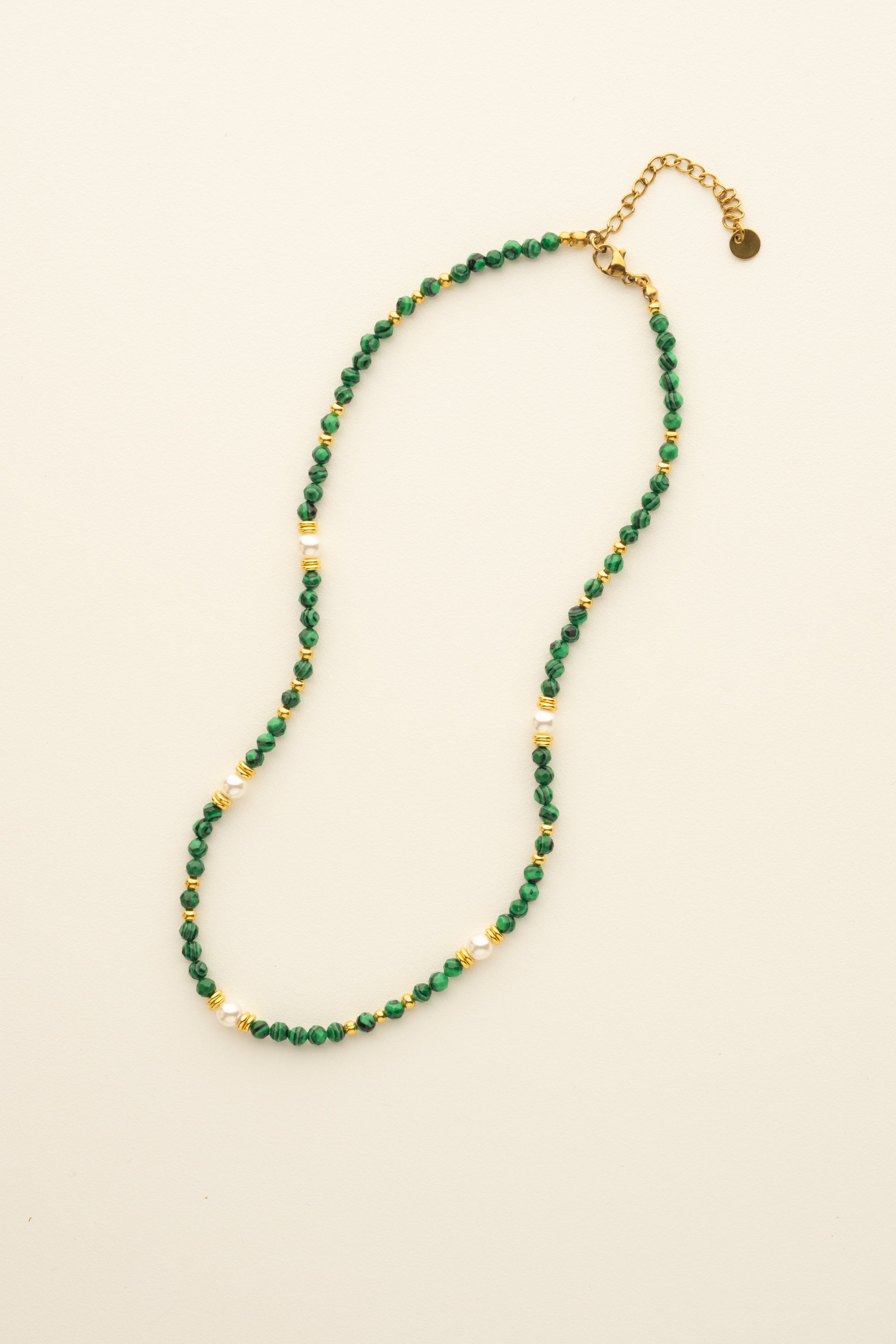 A beautiful harmony of nature-inspired elegance, the Golden Forest Pearl Necklace features deep green beads, radiant gold accents, and delicate freshwater pearls. Designed to bring out your inner glow, this versatile piece is perfect for both casual and formal occasions. Adjustable length for a custom fit and effortless style.