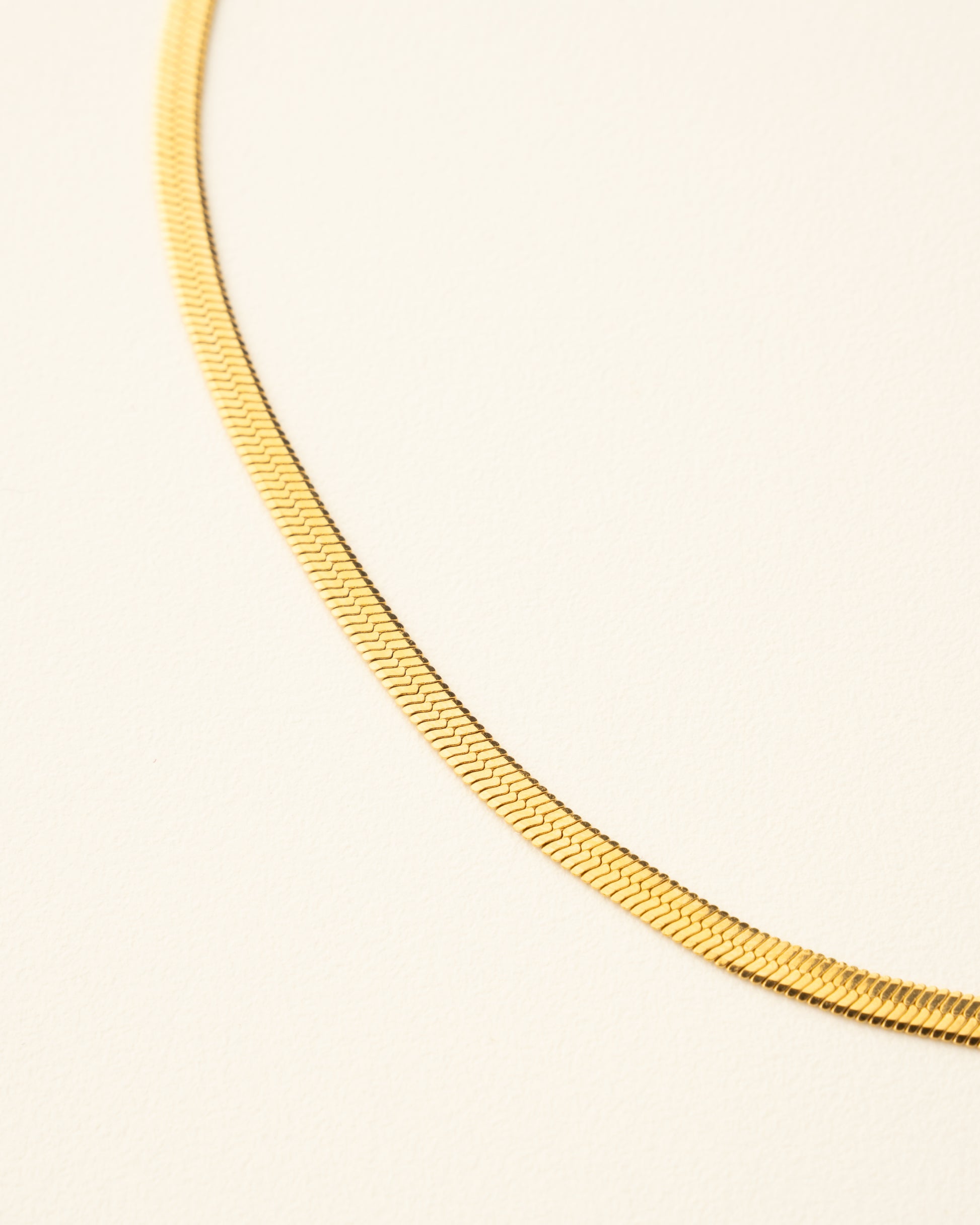 This 18K PVD gold-plated herringbone chain necklace is designed to offer both elegance and durability. Made from stainless steel with a smooth snake chain design, it provides a reliable and stylish accessory that complements any outfit. Its high-quality plating ensures lasting shine, making it a dependable choice for everyday wear or special occasions.